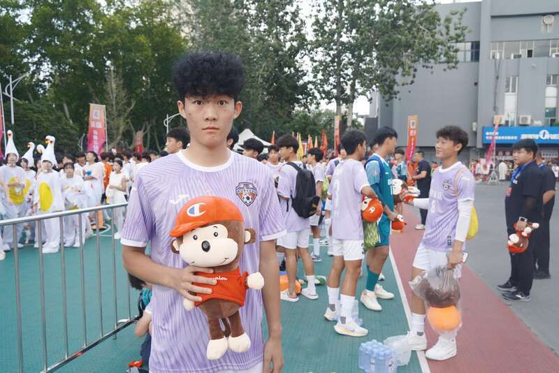 “站上球场,最大的目标就是夺冠。”邯山区代表队邯山星火队的球员高银杰介绍:“我们队的口号是‘邯翼展翅,山岳争锋’,代表了我们大鹏扶摇而上的雄心壮志,还有一种谁与争锋的自信心。”从8岁开始踢足球,高银杰一踢就是十年。