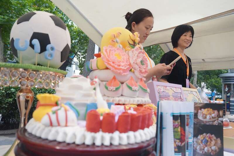 场外体育文化市集上的邯郸市非物质文化遗产面塑花馍。中青报·中青网记者 郭可欣/摄