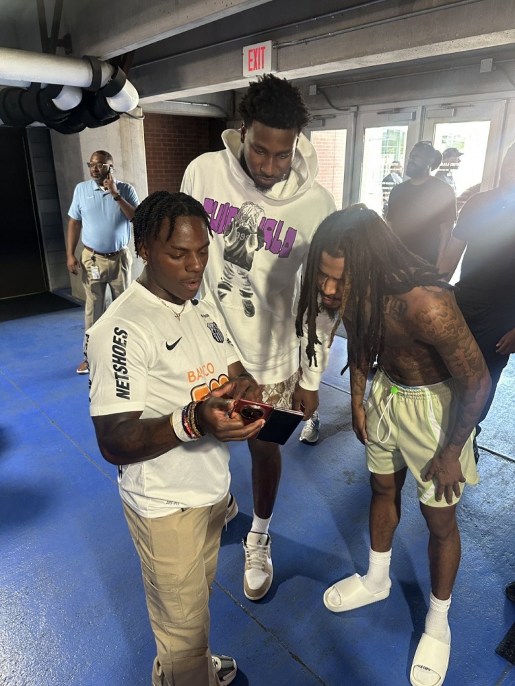 9月12日讯 甲亢哥IShowSpeed直播来到了孟菲斯,在这在孟菲斯和球星小贾伦-杰克逊还有莫兰特相遇,三人同框合影,还真的很难看出谁是粉丝、谁是明星。
