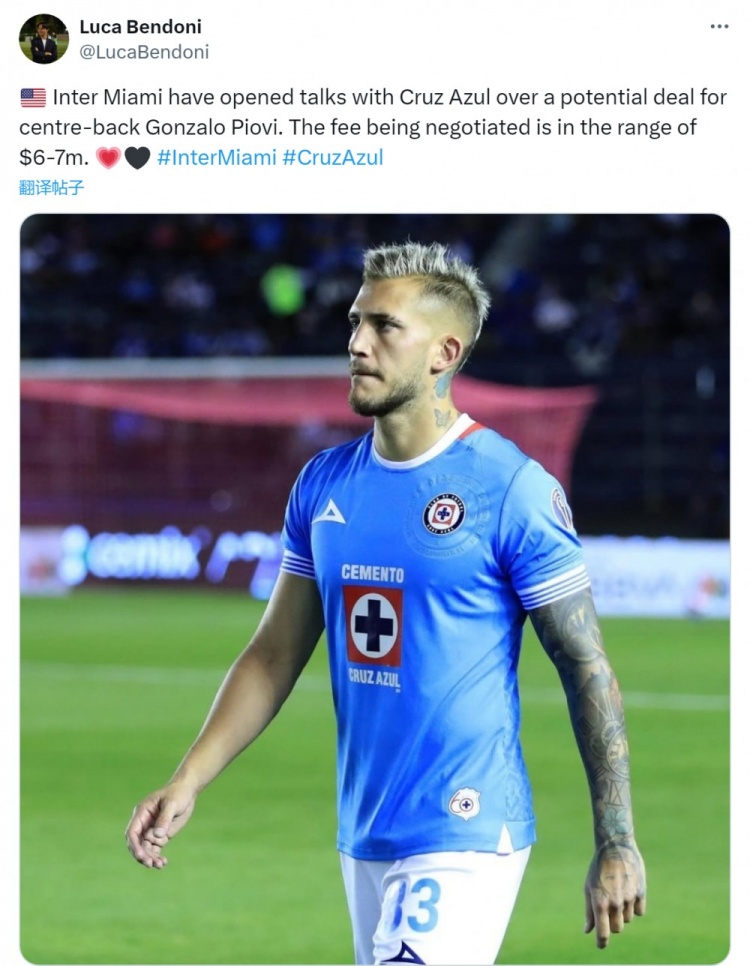 Luca Bendoni透露,迈阿密国际对30岁阿根廷中卫皮奥维感兴趣,已与蓝十字就球员的转会展开谈判,双方讨论的转会费为600万到700万美元。